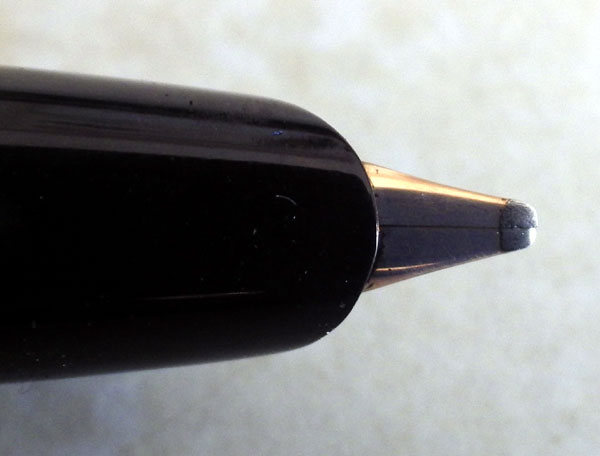 The 404 is definitely post-war. The best dates I can find for it are 1948 to 1956, when pen sales came to an end. The hooded nib hints at the Parker 51, though in fact it’s a perfectly traditional nib, not a tubular type as was featured in the Parker. Indeed, though it looks a little more modern than the No 60C it’s made in exactly the same way. There’s no collector in hiding beneath the hood, just an everyday feed.