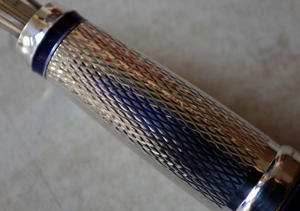 This is, I think, the first of the pens that Cross made for Paul Smith, the British designer. This one’s in Midnight Blue and the alternative is Cherry Red. Paul Smith’s designs are described as “classics with a twist” hence the twist in the clip I suppose. That’s in danger of being a cheap visual pun but despite that, taken in isolation, it’s impressive and original. I haven’t seen a clip like that before. I haven’t seen the Cherry Red pen in the flesh (as it were) but the silver trim certainly works with this dark blue.