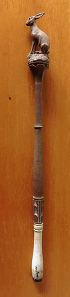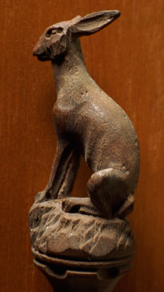 IMGP7072I couldn’t resist this little fellow.  I don’t know how old he is or where he came from, with absolute certainty, though the seller suggested that he had come from the Black Forest.  That seems quite likely given the quality of the work and the fact that it appears to be made from lime wood, which was much used in Germany.  I’ve checked my various reference works and I see nothing else with a carved wood animal finial.
