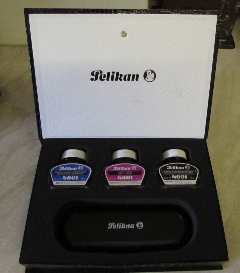 Several years ago I bought a Pelikan Souveran M400. It cost about four times as much as this little pen but it was nowhere near as well presented. I know you don’t write with the box but I’m impressed, all the same. Underneath the usual white paper sleeve is a box made of imitation crocodile or alligator or some such snappy beast. Inside that there are three bottles of Pelikan ink and a spectacle-type box containing the pen.