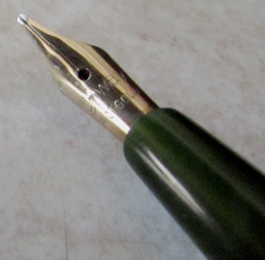It’s a stunning little pen in the Lumina green. Dinkies usually came in sets with a pencil and were extremely popular gifts. I sometimes wonder, particularly with regard to the post-war Dinkies, whether they were more popular with the giver rather than the recipient. I say that because so many of them come on the market in an unused state. Perhaps they were felt to be too pretty to use and remained in their box. Another thing that I’ve heard said is that they are too small to use, and to be honest, I sort of subscribed to that view myself. However, write-testing this little fellow, I found it to be quite comfortable. Perhaps I might write for a slightly longer time with a bigger pen, but it was certainly no worse to write with than the slender First World War Swans or Onotos. I have moderately small hands which probably makes it a better fit, and it may be that those with larger hands can convince themselves that it’s impossible to write with anything other than a big pen, roughly around the size of a policeman’s baton. Having seen joiners with hands like shovels writing perfectly comfortably with a half-inch stub of pencil, I’m inclined to regard that as another of those affectations that plague the fountain pen world.
