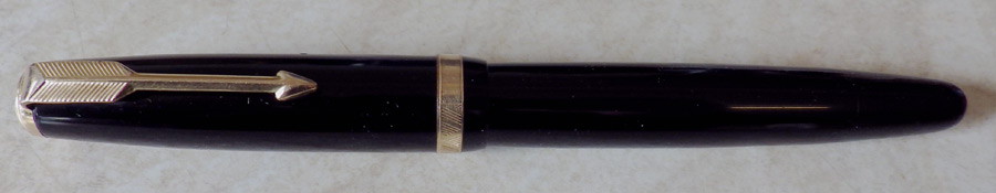This version of the Duofold was issued in 1948 and remained in production until 1953.  It was succeeded by the Aerometric Duofold which, I believe, is a step backward with its squeeze filler which requires the removal of the entire barrel.
