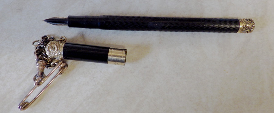 This isn’t the first of these chatelaine pens that I have written about but it’s well worth writing about another one. For once I have an exact date for the pen – it’s 1913 and Ada L Frost was given this pen, probably for a significant birthday – perhaps that’s when she reached the age of 21. A Google search showed up plenty of Ada L Frosts but they were all in America. This pen was made in England and it’s very unlikely that it crossed the Atlantic twice, so we must assume that there is no English record for this particular Ada.