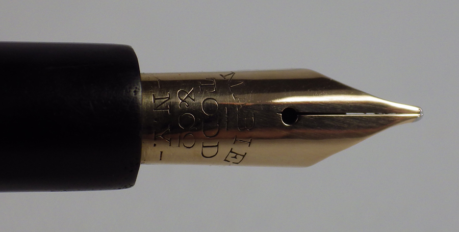 In the first twenty or so years that this pen was around technology was moving on.  Sac-filling pens of one kind or another came along and more efficient feeds were developed.  There wasn’t much anyone could do about this pen’s filling system, but some technician decided to upgrade the feed from the over-and-under type it came with to a simple spoon feed like those used by Waterman.  I say simple, but these new feeds were more robust and gave more consistent ink delivery than the old type.