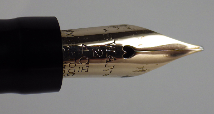 Though the company had moved over to celluloid rather than black hard rubber for their pens, they still used engine chasing to provide a pattern on the barrel and cap, so in that way the pen echoes its BHR predecessors.