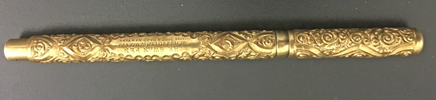 1. Very nice pen. As this is plated, then there won’t be any hallmarks but as a best guess I’d go with 1900 – 02. If only I was clever enough to know that from experience it might be good, but have to say I’ve cheated somewhat and looked in Lambrou’s book ‘F.Ps of U.S. & U.K.’ (page 179) – there’s a fairly close match showing there, with a guide date of c. 1900.