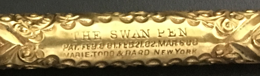Here’s a gold-plated Mabie Todd & Bard Swan eyedropper. It’s not mine, I’m sorry to say. I’ve had one or two of these in the past but in nowhere near as good condition as this one. We know that it is before 1907 because that’s when Bard left Mabie Todd.