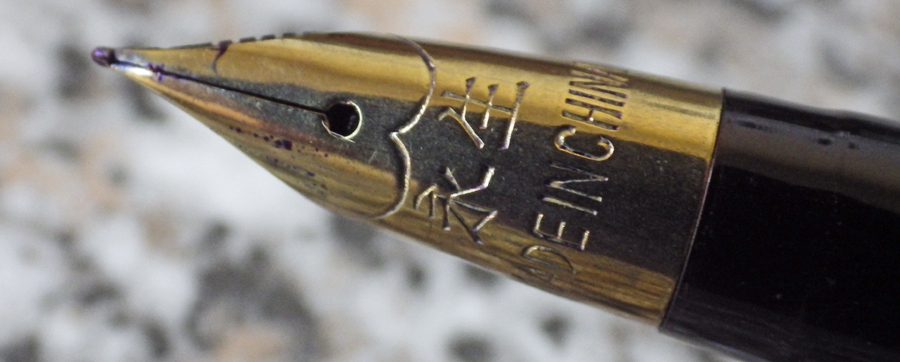 The most obvious resemblance of this nib is to Sheaffer’s Triumph nib. It is said that Wing Sung inherited a Sheaffer factory or Sheaffer capital equipment. I don’t know what the truth of that is. It seems to me that if one had jigs that had been made to machine Sheaffer Triumph nibs, one would be able to make a nib that resembled the original rather more closely than this one does. Whether or not the machinery that was used to make this pen once belonged to Sheaffer, a tubular nib is not an especially hard thing to design or manufacture, no more so than a traditional open nib or the slender tubular nib in a Parker 51. Let’s say it shows inspiration from the Sheaffer Triumph. Of course there are those who will gripe about the Chinese copying things, but every nation has copied at one time or another.