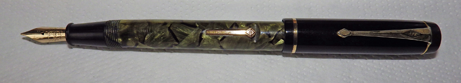 I re-sacced it and cleaned it up. It looked lovely. I searched through my spares for a matching cap but though I had some green marbled ones they were quite different from this unusual patterned barrel. Then, remembering the wartime Conway Stewarts I settled on a black cap. If it appeals to you, keep an eye on the Conway Stewart section of the sales website.
