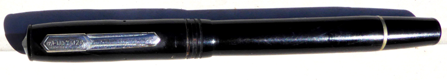 This rather unusual Stephens was made in France and bears the stud-filler which must have been licensed from Langs. The pen has been well-used and has lost its cap rings. It bears the patent number 857 and is dated 1935, making it an early example of the Stephens fountain pen. The steel nib, marked warranted and bearing what might be a seal’s head, is most likely a replacement.