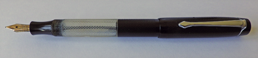 It has been quite a while since I’ve restored a bulb filler. I’ve written about them several times before, because I find them quite impressive. There are two very similar designs, one by Mentmore the other by Langs. This one, I feel sure, is by Langs. It is identical in design to National Security pen which was certainly by Langs, and the pattern of the engine turning is the same as other Langs pens I’ve worked on.
