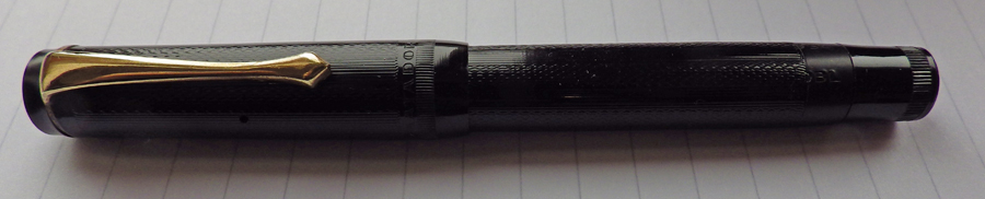 This Matador Garant 994 is a good example of the quality and style of pen that was being produced in Germany in the forties. The chased celluloid harks back to the black chased hard rubber of a few years before. It makes a very satisfying finish. The clip shines up very well and gives the impression of gold – which it probably isn’t – perhaps some shiny alloy. As I understand it, gold wasn’t available to pen makers during the war but Matador made a virtue of necessity, producing a flexible steel nib that was as satisfying in use as any gold one. I’m really impressed by this nib.