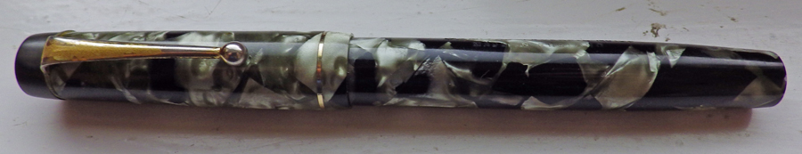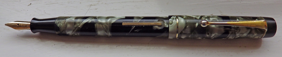 I have had doubts in the past about the degree to which the Stephens company was involved in the production of the pens which bear their name, but now I have little doubt that there thirties and forties pens were entirely a Langs product. This black and grey marbled No 106 is an excellent example. The number refers to the price which in this case was ten shillings and sixpence. That is almost impossible to convert accurately into modern money but online converters suggest Ā£65 – Ā£70 which seems reasonable for a pen of this quality. Like all of Langs output at that time, the pen is in a traditional style with no attempt to modernise the appearance or mechanics. Like the Mentmore I wrote about recently it is in the style that had become the standard British pen.