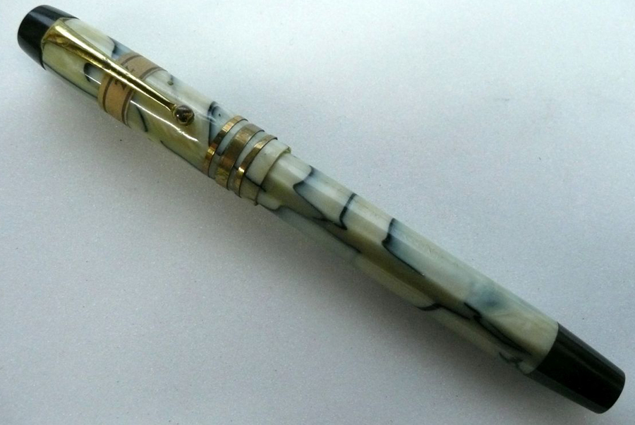 Here we are, back with the Golden Guinea again. Paul S has provided me with a photo of his very beautiful Golden Guinea, complete with the twenty-one shillings pricetag which proves my theory wrong. The Golden Guinea did cost a guinea! I think that means the pens must have been later than the thirties as I had surmised. Beautiful as these pens are they are hardly first rate; why would anyone pay twenty-one shillings for these pens when a much better one could be had for far less money? The riddle remains…