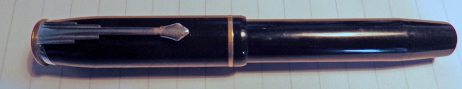 1. I had an almost identical clip on a bulb-filler a couple of years ago. A warranted nib, and “Made in England” were the only clues. Very Art Deco, the whole thing, with a nice barleycorn pattern on the barrel.