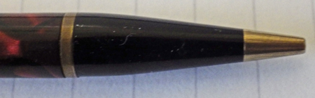 Conway Stewart were masters of design and it shows in their pencils as much as in their pens. This early “Nippy” is a thoroughly practical pencil and it is also a small work of art, a usable sculpture. Conway Stewart used casein more than other manufacturers, and that’s what this pencil consists of, along with steel, brass and gold plating.