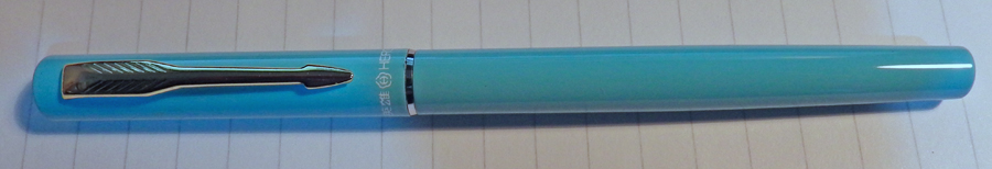 Metal hooded nibs seem to be an exclusively Chinese thing. At least, I haven’t seen one on any European or Japanese pen though I confess my knowledge of modern pens is hardly comprehensive. Beyond that the pen is rather ordinary, traditional even. It’s flattopped and very gently tapered. It has an arrow-clip which strongly resembles that on recent Parker models, though I am unaware of any Parker that looks like this pen. The only thing that draws the eye is the robin’s egg blue of the cap and barrel.