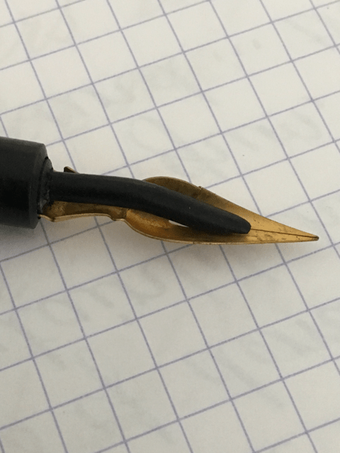 Sometimes this pen appeared with its own fountain pen style nib, others, like this one enable the fitting of dip nibs.