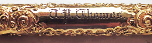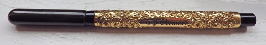 Pens of this age, quality and condition don’t come up very often. I think it’s reasonable to assume that this is the dispersal of a collection of some significance, garnered over many years. In any case, here they are: the gold plated pen is absolutely magnificent. I’ve had one somewhat similar before but this one is in immeasurably better condition. It originally belonged to TP Thomas and I don’t suppose he’s still around today. The solid silver pen is a beauty too. It shows signs of having been used a little more but the condition is nonetheless splendid.