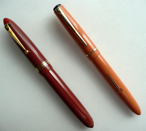 This photo also shows the difference between what Paul has and the colour called “coral”. It doesn’t look much like that stuff that grows in reefs under the sea – in fact the nineteen fifty-six pen looks a little more like what I would expect coral to be. Never mind. It’s Mexican Tan and that’s a name that reflects its appearance.
