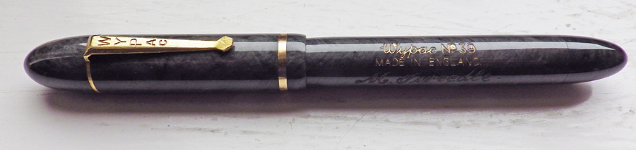 It’s a pity that Wypac was not more successful. This model 39 is a handsome and robust pen in mixed pale and darker grey. The “M Tweedle” on the barrel enhances, rather than detracts from the pen. It carries history.