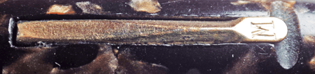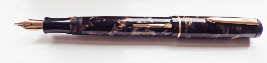 I’m especially fond of this brown marble in any brand of pen. It speaks of the 30s and 40s to me, somehow typical of that period, more so even than other marble patterns. Mentmore barrel imprints are especially subject to wear as they are not deeply engraved.