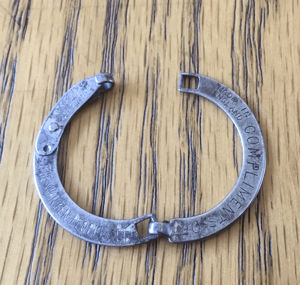 I checked the patent number – it is indeed a keyring, invented by a Mr Leopold Myers, from the same family as the Birmingham steel penmakers of that name. I can e-mail you the pdf of the original patent application if that would be of interest.
