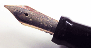 These flat-top Blackbirds are very attractive.  This one is in the /41 pattern, Almond Green.  Like this one, many of the 1930s celluloid patterns are superb.  On the end of the barrel is inscribed BB2B/G2.  I really can’t parse that.  The final “G2” is a complete mystery to me.  I see similar, possibly larger pens in Stephen Hull’s book.  They are designated “G3” so perhaps size comes into it. Much has been learned about Mabie Todd mysteries in recent years but I’m glad there are some puzzles left for us to gnaw upon.