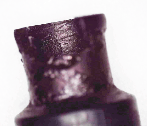 It hadn’t worked, of course, and the glue had overspread the end of the feed and had seeped into the channels. I could scrape it off the end but the channels defeated me. I ran a brass wire brush over it in the hope it would remove the glue but not damage the channels. Didn’t work. The usual advice in these situations is to run a fine blade along the channels but I never do that. It invariably cuts the bottom of the channel which isn’t an improvement. Time to resort to the spares bin.