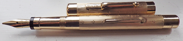 The quality of this set shows in the detail. It is always here, at the junction of the metal and hard rubber that ink eats away at the plating. It’s immaculate on this pen. The chased pattern is very fine.