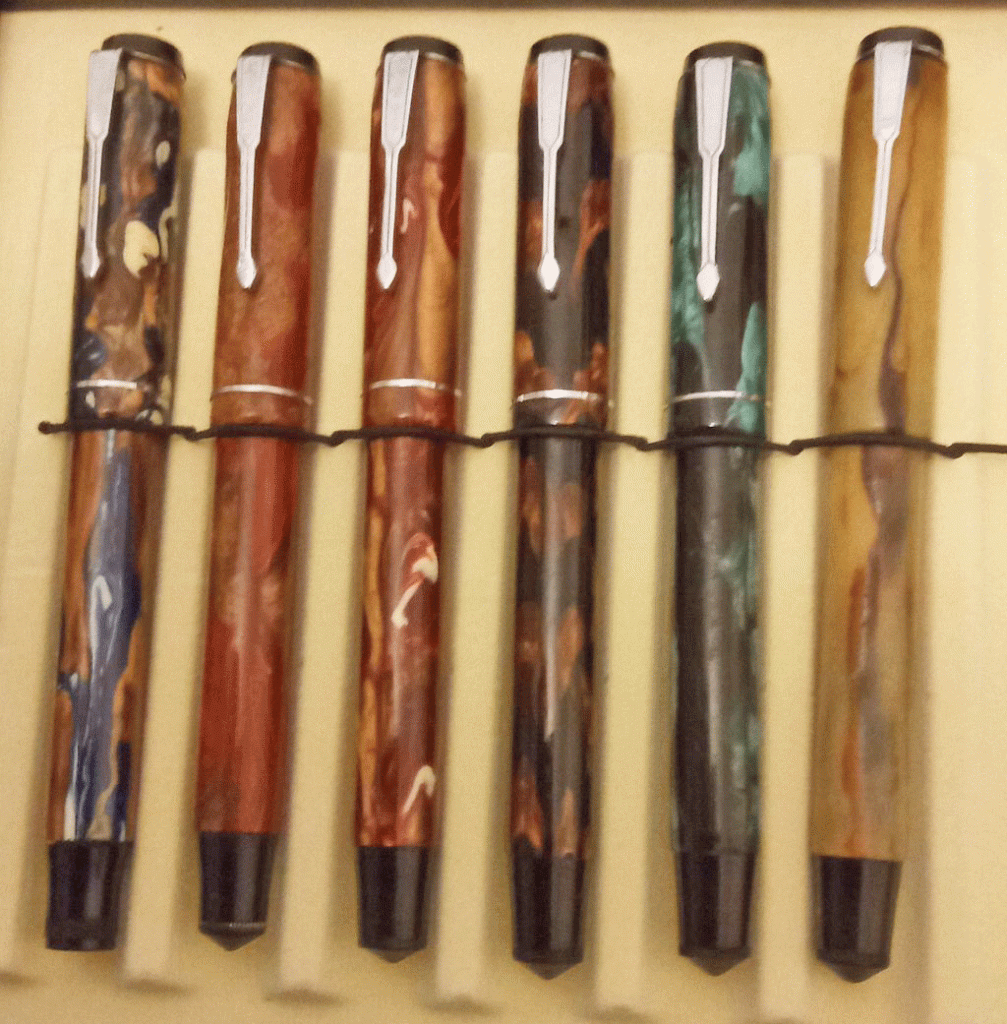 There was a period in the thirties and perhaps into the forties when pens made from very beautiful celluloid were issued under the Platignum name. At first it was only the pen and pencil sets in very decorative boxes that were seen as collectable, especially in America. A very colourful collection could be amassed for little outlay.