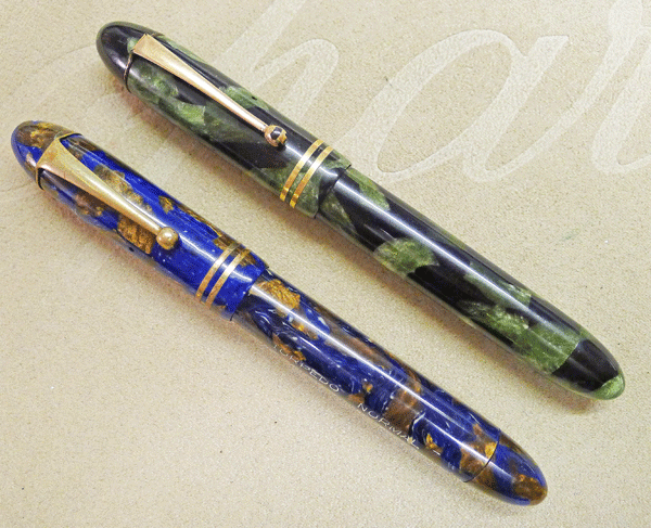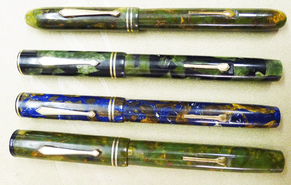 I was vaguely aware of the Progress Fountain Pen, a very uncommon Duofold-like button filler. I’d seen one, maybe two over the years. Then I was presented with these photographs which can only amaze and astound in their variety and beauty.