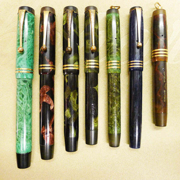 I was vaguely aware of the Progress Fountain Pen, a very uncommon Duofold-like button filler. I’d seen one, maybe two over the years. Then I was presented with these photographs which can only amaze and astound in their variety and beauty.