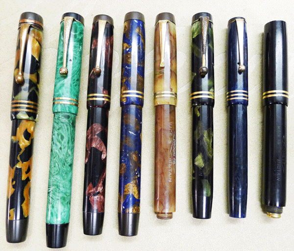 The origins of the Progress range of pens lie with Osmia and Valentine, of which Progress was a sub-brand. Though by no means all of the Progress pens are button fillers, it was a dispute over the patent for this filling system that caused Valentine to withdraw Progress completely. This wonderful array of models and patterns were all produced in a matter of months during 1932.