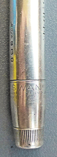 If you took one model of a pen and produced it in different materials, it would be as different as one model and its successor. An example might be the Waterman 52, in black hard rubber, red ripple, silver or gold plated overlay and finally celluloid. Such a difference can be seen, too, in the ever-handsome late 30s Swan Leverless, shown here in silver, and as different a pen as could be from its celluloid sibling.