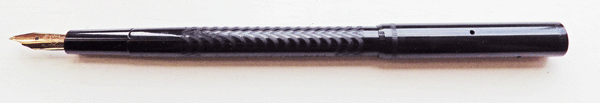 It’s a Blackbird Fountpen, made around 1914 and the black hard rubber is like new, black as night and with chasing so sharp it could cut you. It’s a beautiful pen in first class condition.