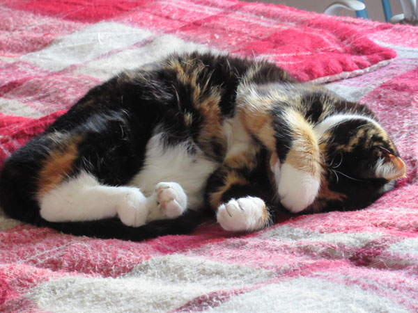 I’m the new part-time assistant. I have to mind my ps and qs because I’m still here on a trial basis. I appear at the window early, come in, get a few cat treats, say hello, hello, hello, pet me, pet me, pet me and then get down to work fixing pens. Then I’m tired and have to have a nap for four hours or so. When I get up I have to go out to do cat things and I pop home for some cat food from my Mum. The it’s back to pen repair and maybe another nap but for only a couple of hours. So that’s my day.