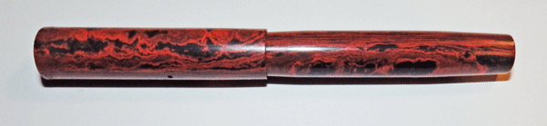The barrel imprint explains it all: Le Merle Blanc Made by “Swan” Pen People Fabrique en Angleterre. This handsome little pen is very uncommon nowadays, especially in mottled hard rubber.