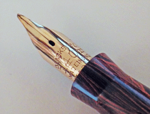 Le Merle Blanc was part of Mabie Todd’s export drive beginning in the mid-twenties and it was aimed at Belgium, France and Switzerland. This MHR vest pocket pen was part of the earliest range. Later pens were in marbled celluloid.