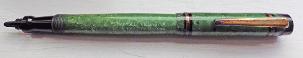 This small Swan (11.6cm capped) is American and bears some resemblance to the red US Swan I wrote about recently. I’ve had it for quite a long time but haven’t done anything with it until now because it is quite severely damaged.