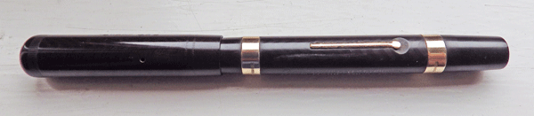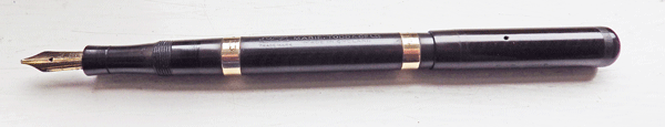 It’s a pleasant pen with warm-to-the-touch hard rubber and a shape that sits comfortably in the hand for a full day’s writing. The style was never forgotten and there are many later pens that have a memory of it. I’m writing with one now, a Waterman Forum.