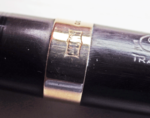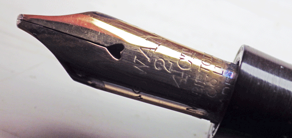 SF2s are often plain, a pen that didn’t cost too much and was generally affordable. This one, though, has a touch of opulence, two hall-marked 9 ct barrel bands. They’ve taken some wear over the years but can still be dated to 1926. It is graced with a glorious stub with a hint of obliquity.