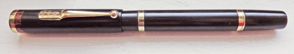 I no longer feel I’m taking the moral or ethical high ground as a conservative restorer. In actuality I turn out pens the way I like them. The SF230 I’m drafting this with has black hard rubber faded to a pleasing rich chocolate brown. The plating on the barrel and cap bands is reasonably good but the lever is pitted. Though it takes a good shine – brighter with all the handling – there are the minor scratches of ninety years of use and the barrel imprint is shallow but legible. It isn’t at all like the year-old Waterman Carene also on my desk and that’s entirely as it should be.