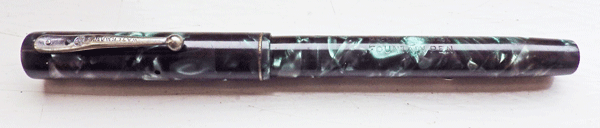 This is a flat topped pen but a slight softening of the angles is occurring: the top of the cap and end of the barrel being very slightly rounded. The rivetted clip worked well but would be replaced in later models.