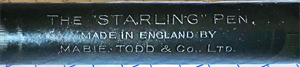 I asked Steve about Starlings when I proof read the Swan book as I thought they might have an MT&Co connection. He thought then that they were made (probably not by MT&Co) for other firms to sell as their own brand (like a Kenbar or a Jenner) as he (and I) had only seen pens with warranted nibs and a plain Starling imprint. I showed him this post at the London Pen Show earlier today and clearly Starling is another MT&Co sub-brand. I will have to look out my Starling to see if is similar to the one in this post but from memory it is more like the one in your post nearly 10 years ago. It is possible I suppose that that somebody else made Starlings as well, for instance like Boots used Langs, DLR and Burnham over the years, or perhaps MT&Co only made them for the Australian market and there is no connection? Probably we shall never know but it will be fun trying to find out.