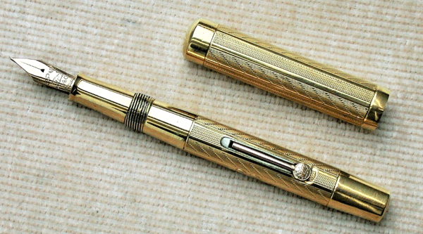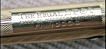 A few days ago a Spot went through eBay and sold for a price in excess of £700. It is solid gold, beautifully designed and in perfect condition. Unusually for a Spot, Mentmore put their name to this pen, appropriately named the Regal Spot. It bears the leopard imprint on the nib.