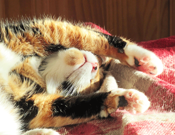 Oh hi! It’s me, the delectable Tuppence again. It’s been a very busy day and it’s time for a nap! Deb was writing a letter with her dip pen and those little nibs are ideal for chasing around the floor. There are now several in every corner.