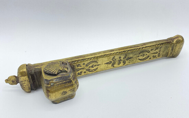 The divit is a Turkish/Persian calligrapher’s tool. The small side piece holds ink and the long part holds pens. I don’t know whether or not it is intended to be portable. The pens Turkish calligraphers use are seasoned reeds, cut to a point somewhat like a quill. Calligraphers there are artists whose work is often very public. A poorly judged cut of the reed will change the characteristics of the writing and this is regarded as a serious fault, so the artists have to be skilled in shaping their reeds to suit the work they have to do.