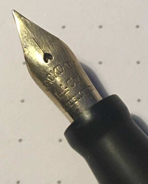 Its user wrote with it strangely, writing with the nib almost on its side. It has worn in such a way that it is almost unusable for anyone else. All the same, it’s good to see a Jackdaw nib. So many of them have been damaged because of the thin metal.