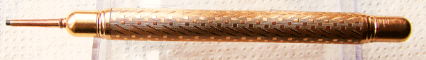 Probably gold plated (but it’s possible that it’s solid gold) and so beautifully decorated, this little instrument, as well as its eminent practicality, spoke of its owner’s taste and wealth. There are inexpensive extending pencils in base metals but I have never seen a cheap, early combo.